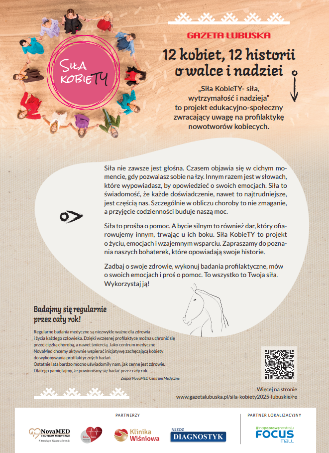 NovaMED Centrum Medyczne z dumą dołączyła do grona partnerów wyjątkowego projektu edukacyjno-społecznego „Siła KobieTY – siła, wytrzymałość i nadzieja”, realizowanego przez Gazetę Lubuską.